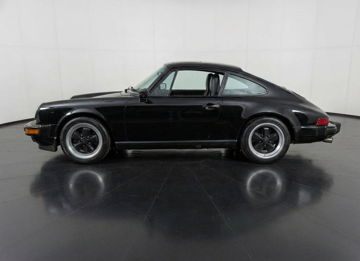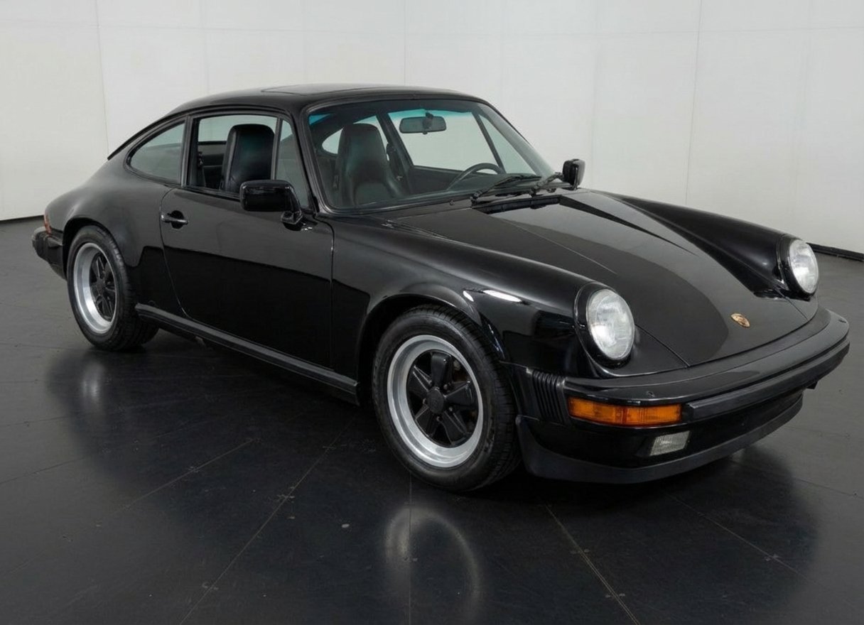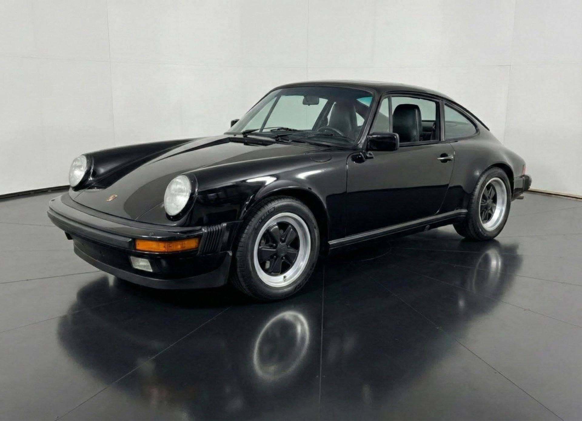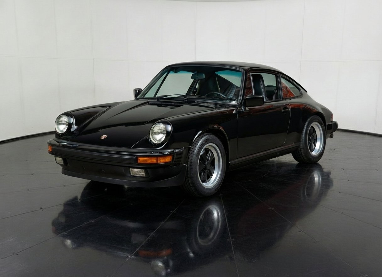 The 911 also received enhancements to comfort and usability, such as air conditioning, four-wheel independent suspension, improved interior ergonomics, and a more modern electrical system. This example is finished in classic Black over a Black leather interior and features factory options such as Fuchs forged alloy wheels, sport shocks, power conveniences, and an electric sunroof—highlighting the premium specifications available during this era.