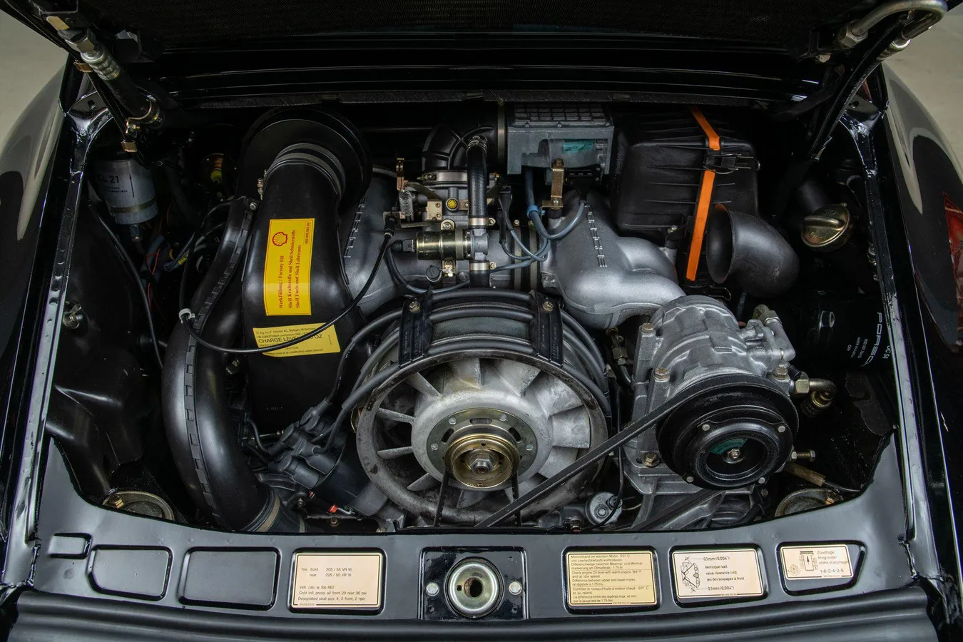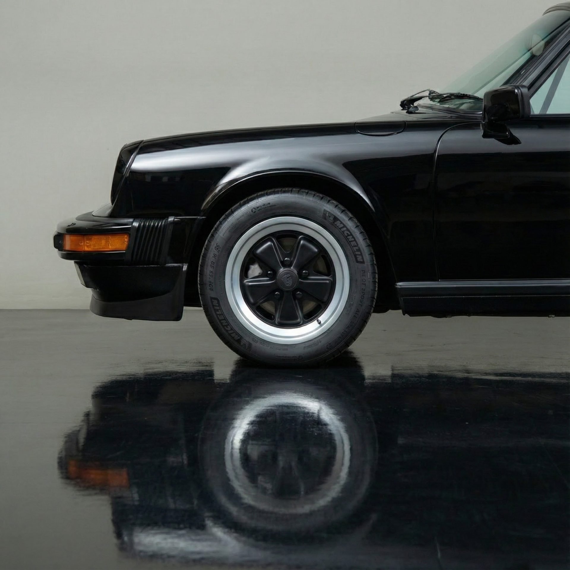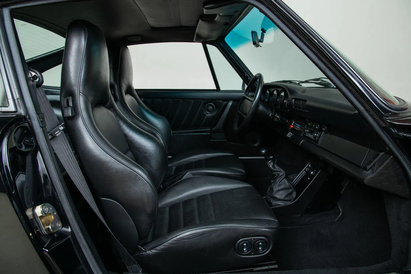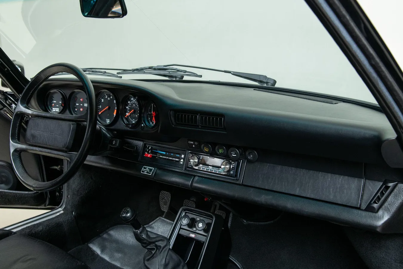 The 911 also received enhancements to comfort and usability, such as air conditioning, four-wheel independent suspension, improved interior ergonomics, and a more modern electrical system. This example is finished in classic Black over a Black leather interior and features factory options such as Fuchs forged alloy wheels, sport shocks, power conveniences, and an electric sunroof—highlighting the premium specifications available during this era.