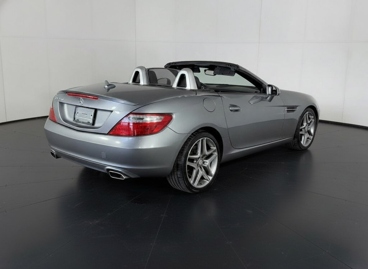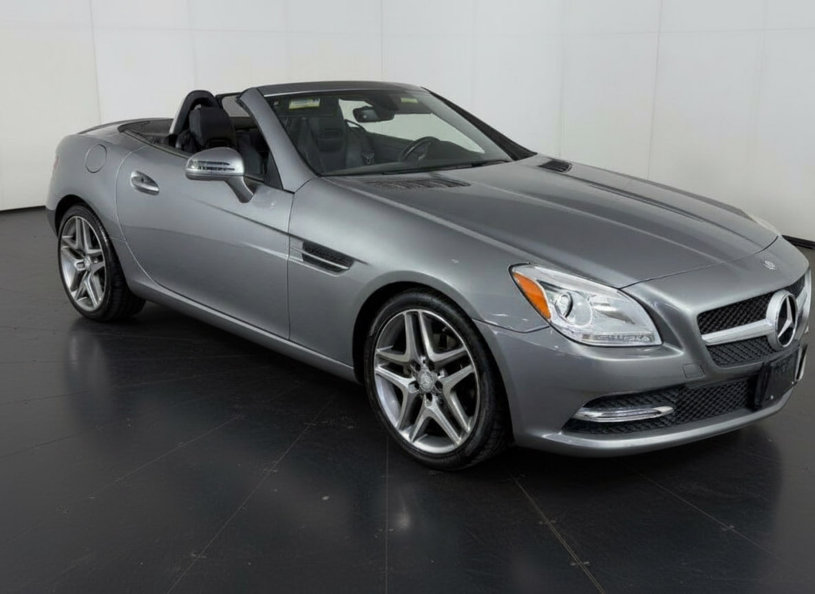 2014 Mercedes-Benz SLK 250 Premium Roadster – where classic German engineering meets open-air luxury. Finished in elegant Palladium Silver Metallic over a Black leather interior, this hardtop convertible offers both refined comfort and engaging performance with only 40,910 miles on the odometer.