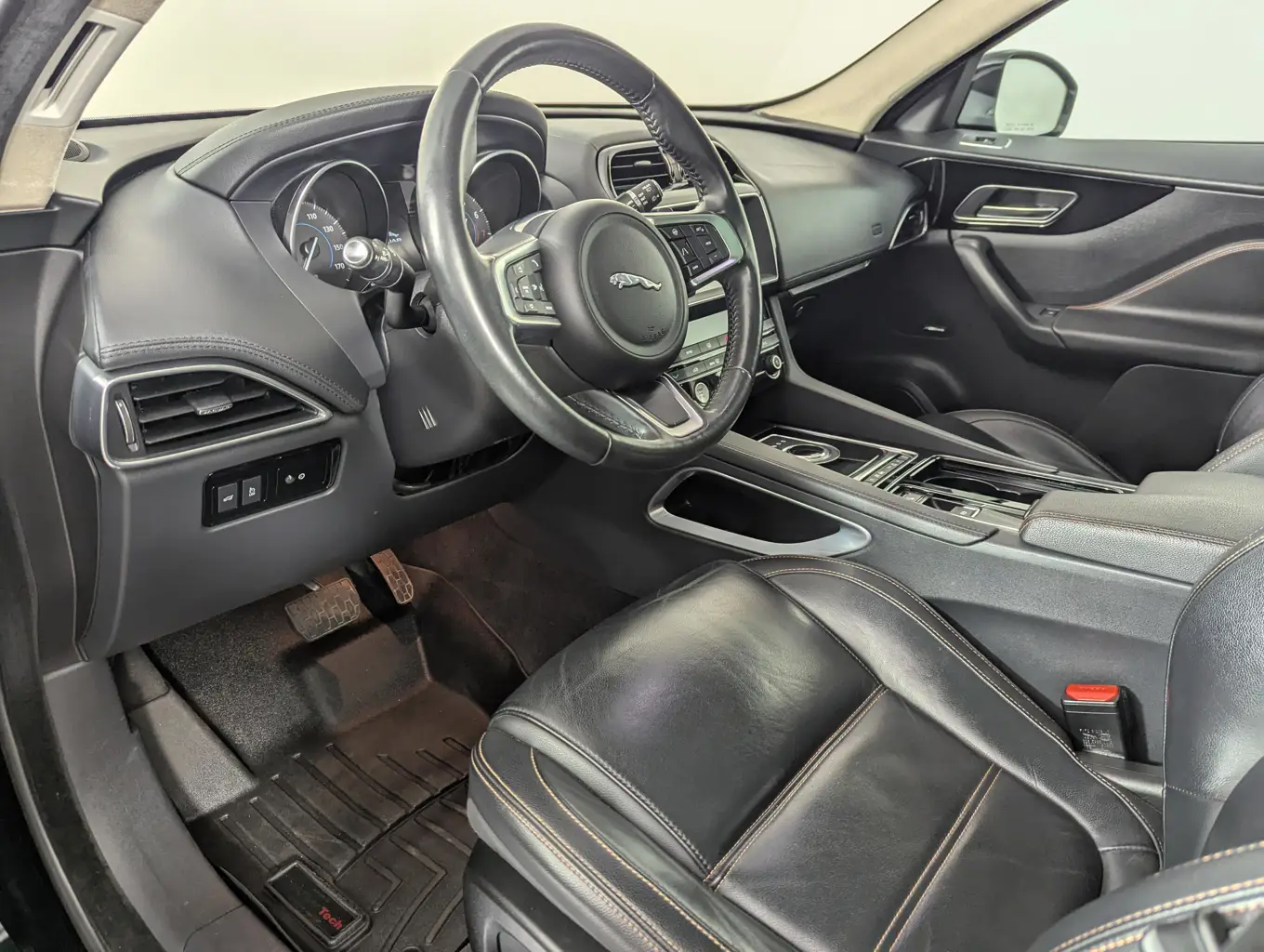 On the road, the F-PACE offers a secure and engaging drive with its AWD system, 19-inch Split-Spoke alloy wheels, and Xenon HID Headlights with signature cleaning. A full suite of safety technology provides peace of mind, including a Backup Camera, Collision Avoidance System, Lane Departure Warning, and Front and Rear Parking Aids.