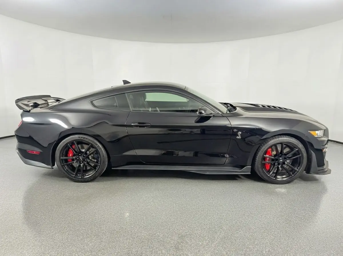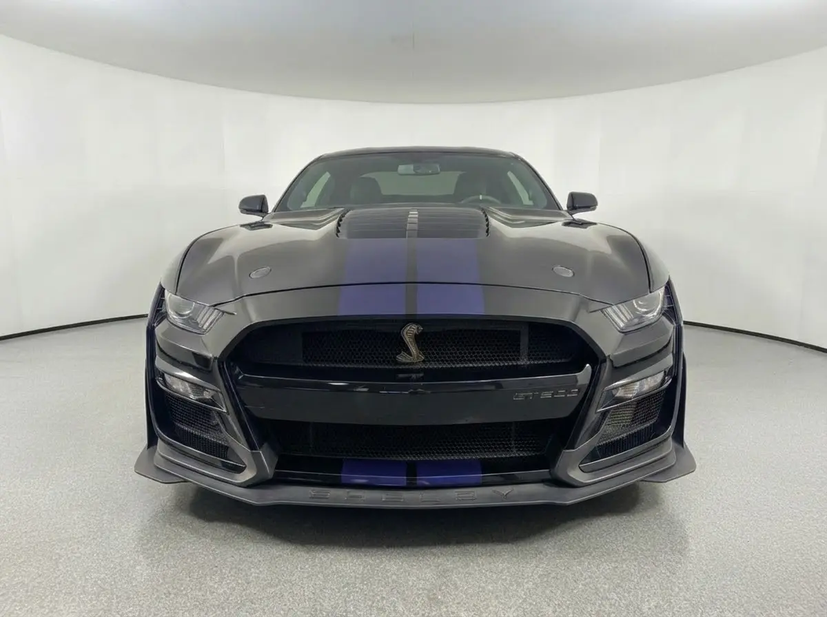 This 2021 Ford Mustang Shelby GT500 is the ultimate expression of American muscle and precision engineering. A Clean CARFAX vehicle finished in menacing Shadow Black, it is powered by a supercharged 5.2L V8 engine producing heart-pounding performance, managed by a lightning-fast 7-Speed Dual-Clutch Automatic and a track-ready RWD drivetrain.