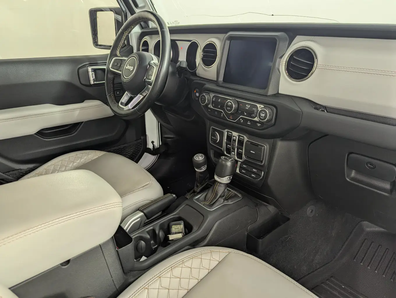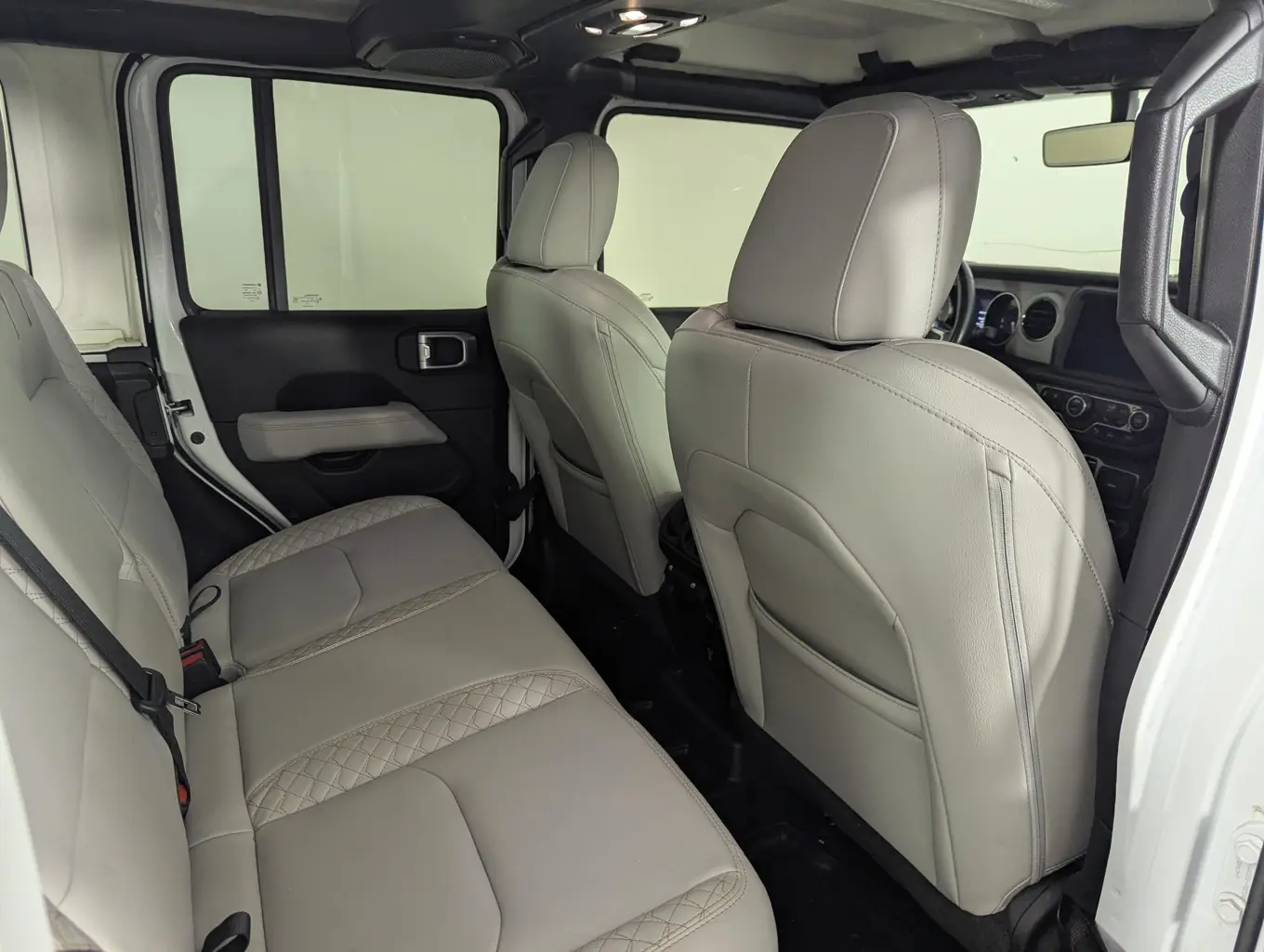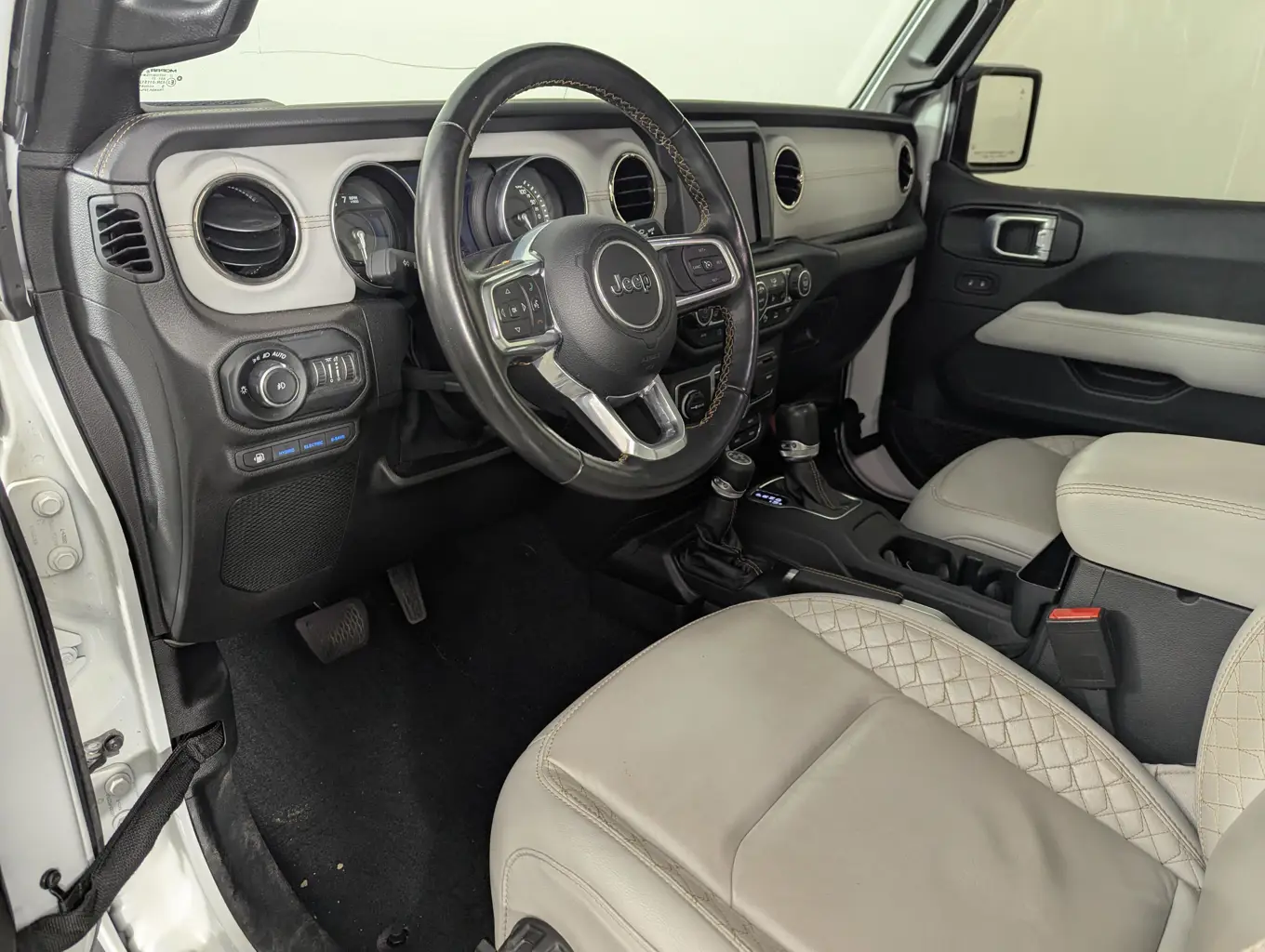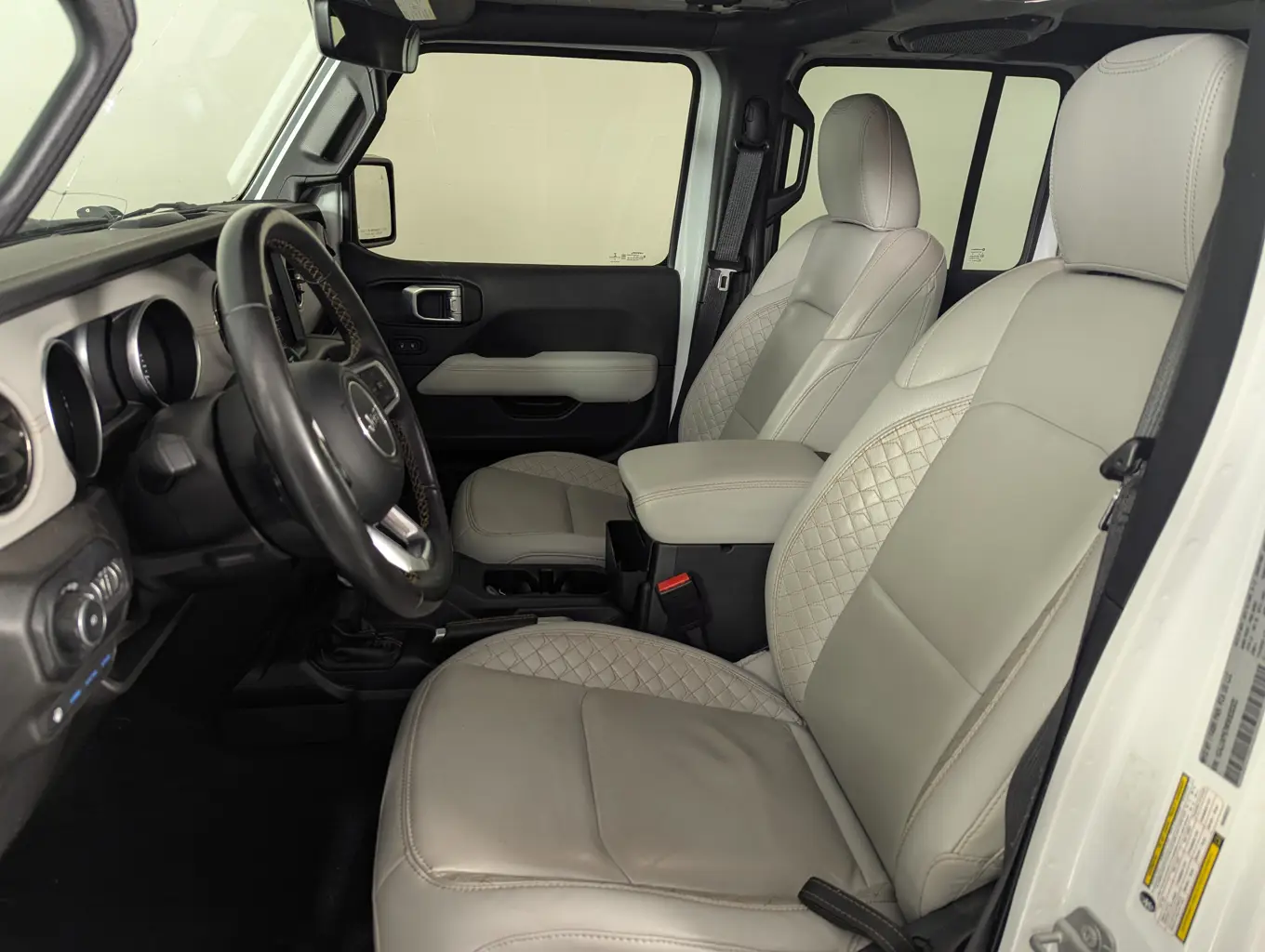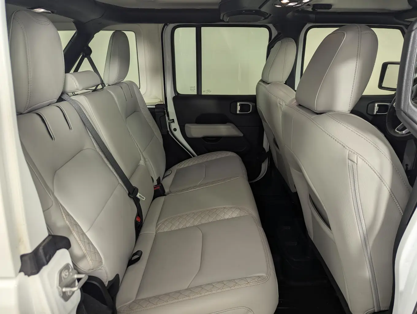As a High Altitude edition, this Wrangler features a premium monochromatic aesthetic with a Body Color 3-Piece Hard Top, matching bumpers, and grille. The interior is a bespoke sanctuary featuring Custom White Leather Trimmed Bucket Seats with Caramel Interior Accents and a wrapped instrument panel. Comfort is elevated by Heated Leather Seats, a Heated Steering Wheel, and Dual-Zone Automatic Climate Control. Technology is at the forefront with the Uconnect 4C Nav 8.4-inch display, Apple CarPlay, Android Auto, a Wi-Fi Hotspot, and the premium 9-Speaker Alpine Audio System.
