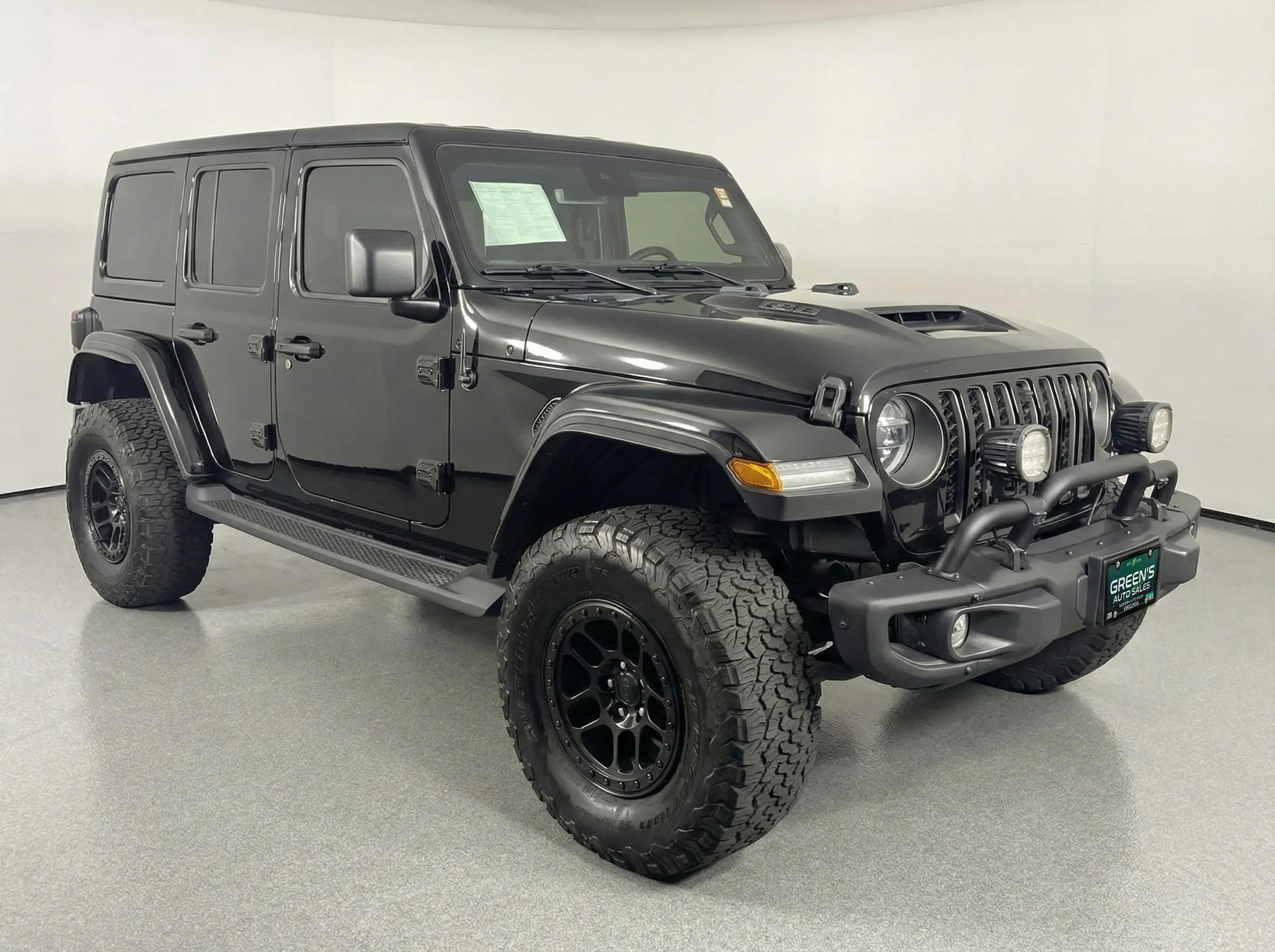 2022 Jeep Wrangler Unlimited Rubicon 392 is the ultimate expression of off-road dominance and raw power. Featuring a Clean CARFAX, this Black Clearcoat monster is driven by the legendary SRT HEMI 6.4L V8 engine paired with a quick-shifting 8-Speed Automatic 4WD transmission.