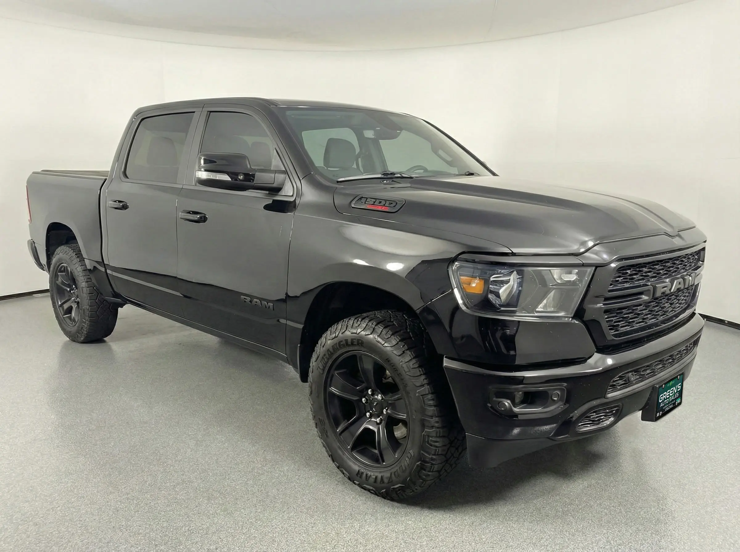 2022 Ram 1500 Big Horn/Lone Star is a high-efficiency powerhouse that blends heavy-duty capability with a sleek, dark aesthetic. A One-Owner, Clean CARFAX truck finished in Diamond Black Crystal Pearlcoat, it is powered by the torque-heavy EcoDiesel 3.0L V6 engine and an 8-Speed Automatic 4WD drivetrain, featuring an Anti-Spin Differential Rear Axle for superior traction.